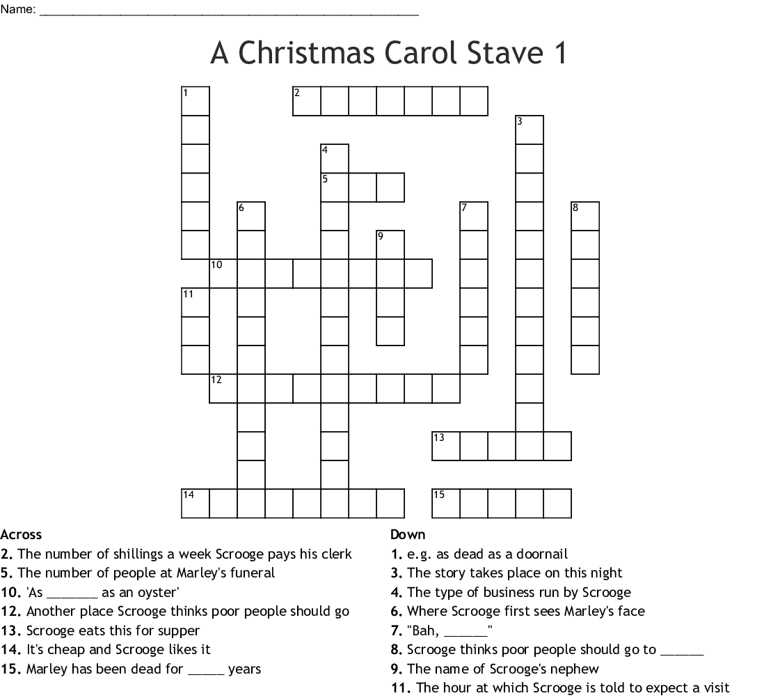 A Christmas Carol Crossword Printable Printable Template 2021