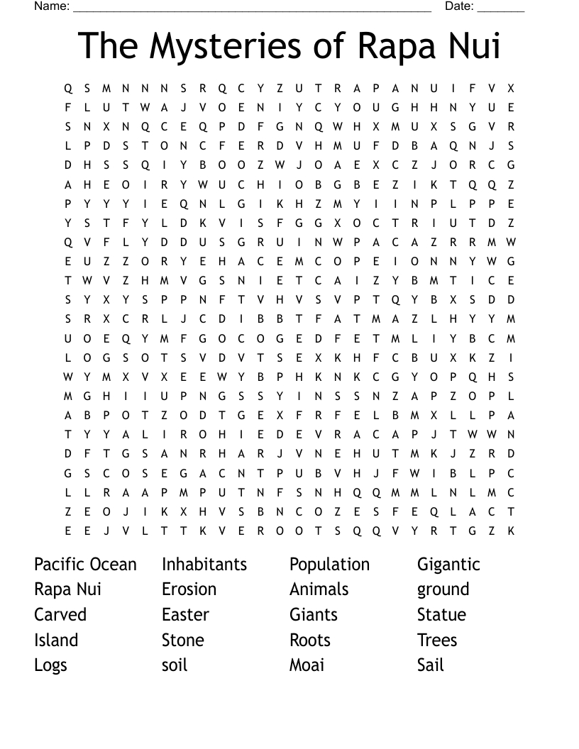 The Mysteries Of Rapa Nui Word Search – Wordmint with Like Easter Island Crossword Puzzles