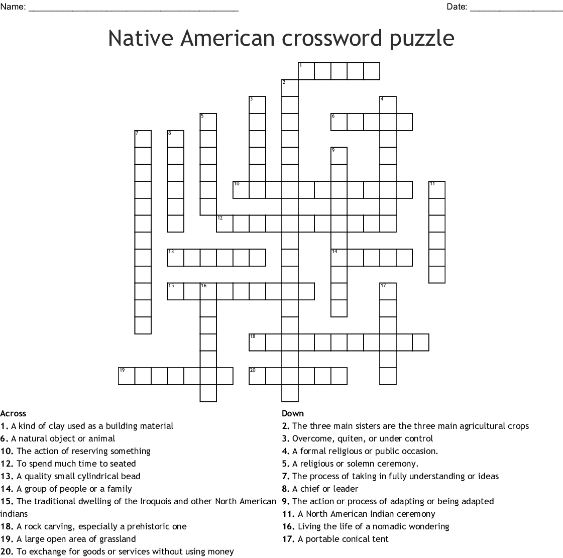 Native American Crossword Puzzle Printable Printable Crossword Puzzles