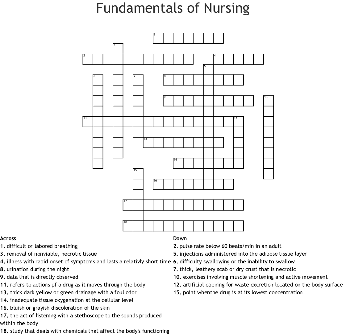 Printable Nursing Crossword Puzzles Printable Crossword Puzzles