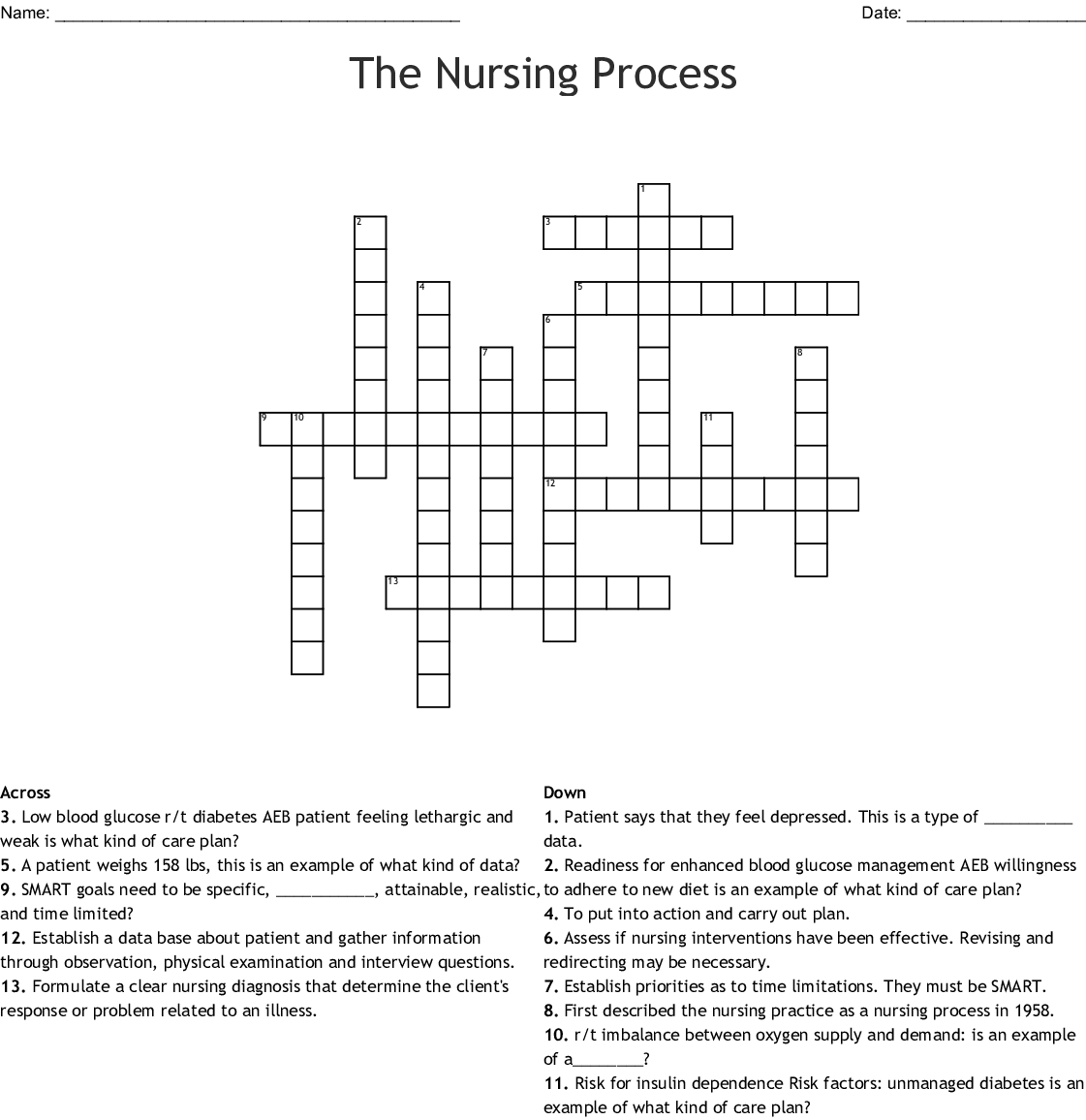 Printable Nursing Crossword Puzzles Printable Crossword Puzzles